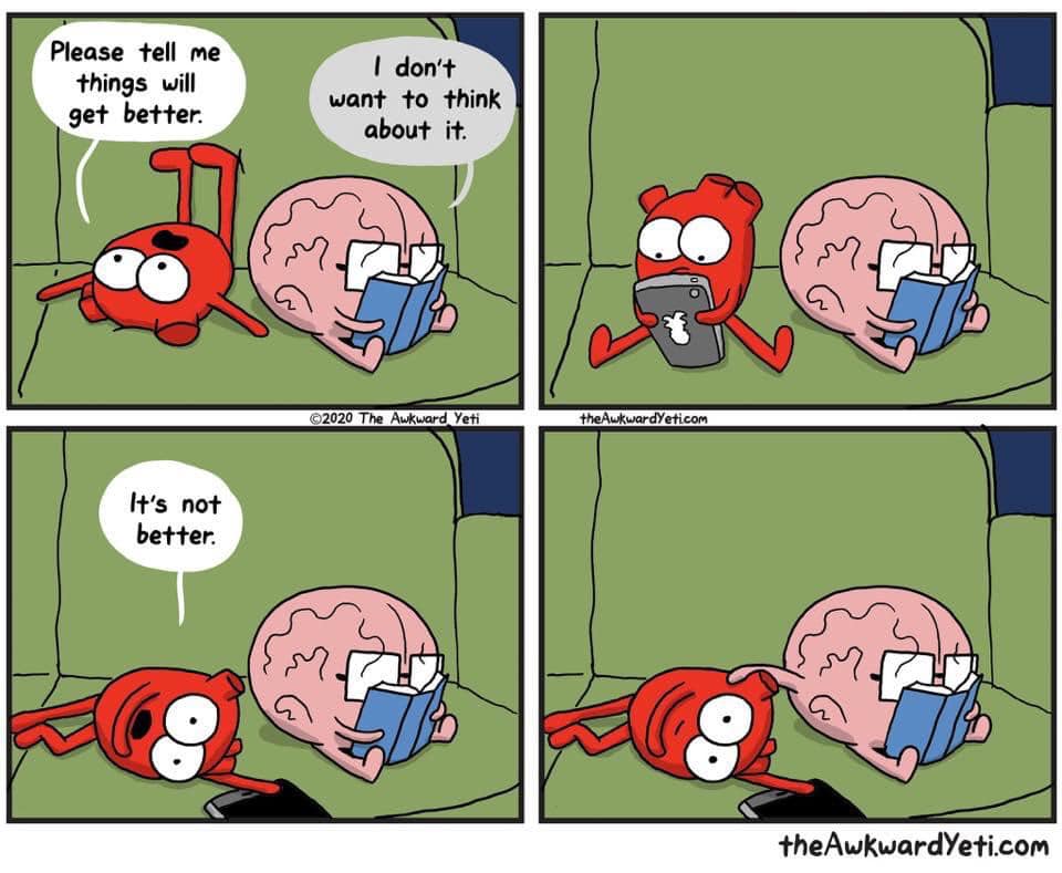 Reach for better-feeling thoughts. Or, let go of *all* thoughts: in for 6, hold for 3, out for 6. x2. Every half hour. Set reminders. No, I haven’t been doing it lately, either. Let’s get back on the wagon together.