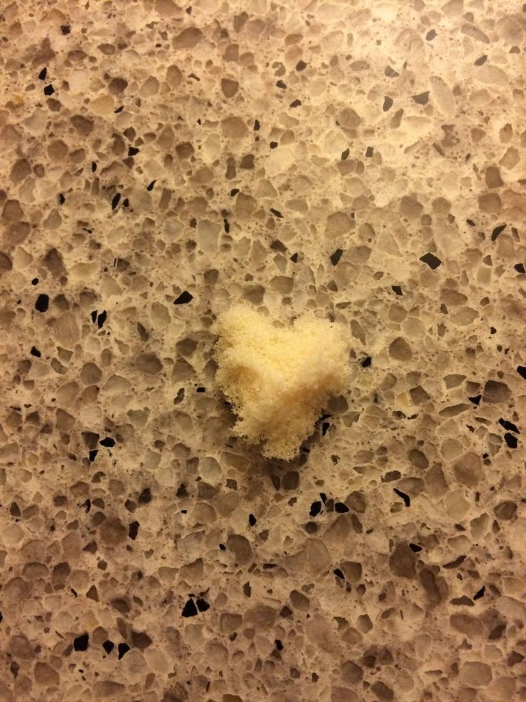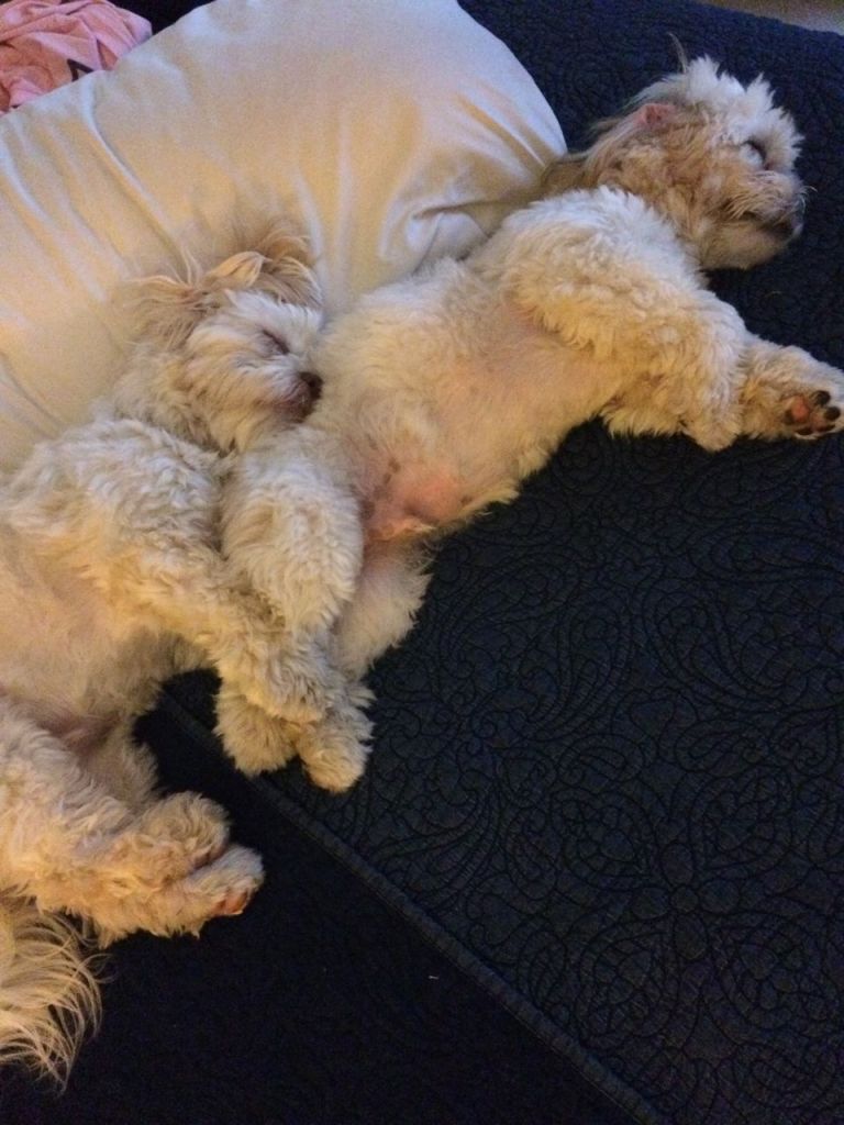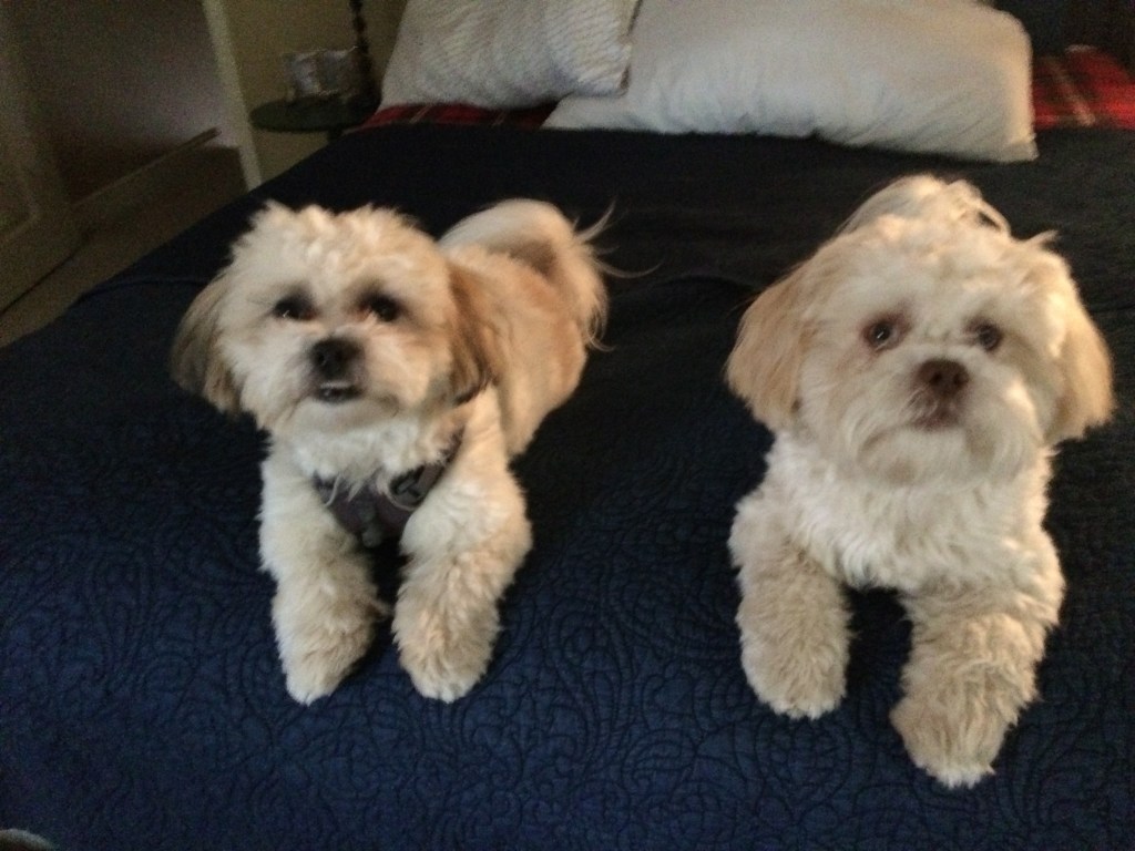 The pups got a hold of the kids’ Nerf basketball and chewed it to bits. They left their calling card, of course.